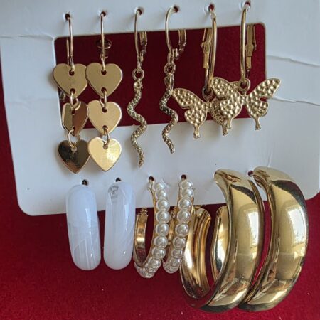 Gold Hoop and Pearls Earring Set