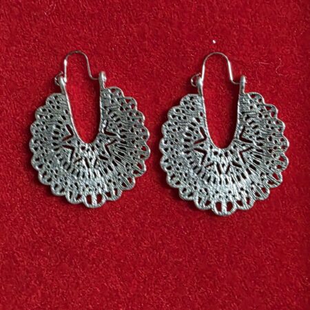 Silver Tone Mandala Hoop Earrings